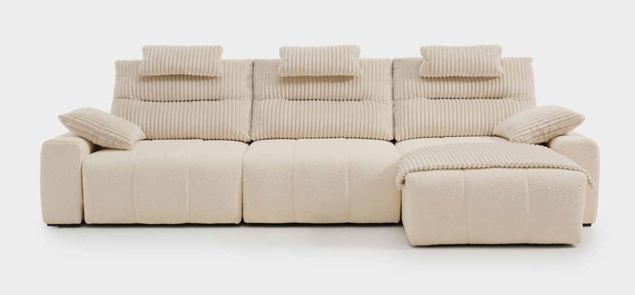 Chaque module d’assise et chaque dossier sont généreusement rembourrés, tandis que les coussins d’appui-tête (fixés au dossier de chaque module) permettent de multiples positions de repos entièrement personnalisables, pour un confort sur mesure adapté à tous les utilisateurs.