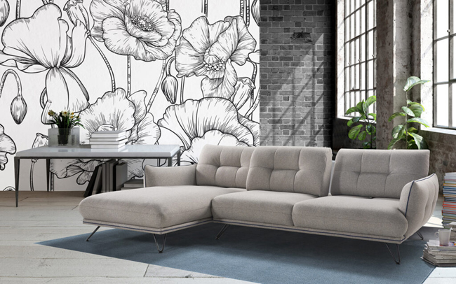 L'Ameublier HOME DESIGN Avance-Recule Dimensions : l 264 x h 88 x p 161/168 cm Le canapé d’angle avec chaise longue DURBAN s’adapte à vos besoins grâce à son système avance-recule. Reculez les dossiers d’un simple geste pour passer en mode détente. Sobre et élégant avec ses pieds métalliques en épingles, il s’intègrera dans tous les styles de salon. Optez pour un confort d’assise personnalisé avec L’Ameublier ! CARACTÉRISTIQUES TECHNIQUES Canapé d’angle chaise longue en tissu – Structure en peuplier, sapin et multiplis – Suspensions assise et dossier sur sangles élastiques – Coussinage assise (32 kg/m3) et dossier (18 kg/m3) en mousse polyuréthane – Garnissage avec fibre acrylique 100% polyester – Pieds métal finition noir mat. canapé angle