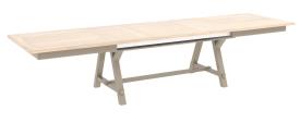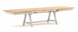 Ateliers de Langres Réf. COT170 Dimensions : l 170 x h 77 x p 100 cm Table en chêne massif, certifiée Origine France Garantie. Y compris 1 allonge portefeuille 100 cm -> L 270. Détails : - Dessus et allonge épaisseur 27 mm : panneaux centraux en médium plaqué chêne rainurés tous les 13 cm et rives en chêne massif. - Coulisses métalliques synchronisées. - Pieds en chêne massif. - Ceintures en chêne massif. table avec allonge