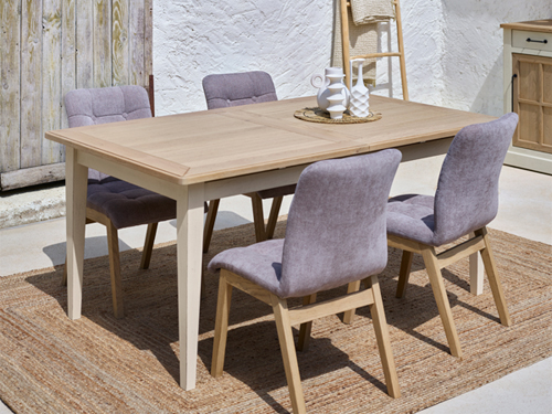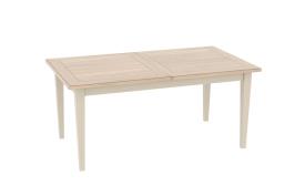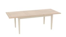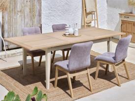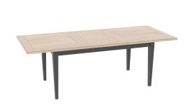 Ateliers de Langres Réf. ODT170 Dimensions : l 170 x h 77 x p 100 cm Y compris 1 allonge portefeuille 60 cm : L 230 Détails : - Dessus et allonge épaisseur 27 mm : panneaux centraux en médium plaqué chêne rainurés tous les 13 cm et rives en chêne massif. - Coulisses métalliques synchronisées. - Pieds en chêne massif (entre pieds 142 cm). - Ceintures en chêne massif. table rectangulaire