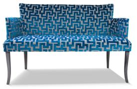 Paget ARMAND canapé laque vieil argent tissu labyrinthe bleu