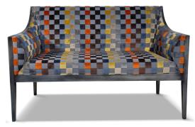 Paget GUILLAUME canapé laque vieil argent tissu carré gris