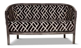 Paget Dimensions : l 134 x h 78 x p 63 cm Petit canapé arrondi idéal pour un salon cosy. Canapé petit volume faible encombrement, possibilité de sur mesure. Canapé personnalisable : coloris du bois et revêtements aux choix dans une vaste gamme. Canapé pour salon, réception, chambre, hall d’entrée. Canapé Julien pour CHR, canapé français. Détails Techniques : Structure en hêtre massif – Arceau cintré à la vapeur – Mousse HR 40 kg/m3