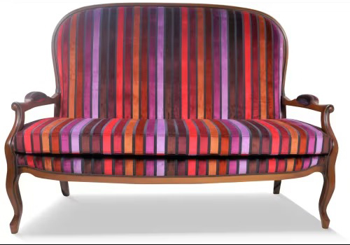 Paget Dimensions : l 116/... x h x p cm canapé teinte CH patiné tissu berlet rayure Canapé personnalisable: coloris du bois et revêtements aux choix dans une vaste gamme. Canapé de styles pour CHR, canapé français.