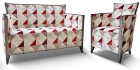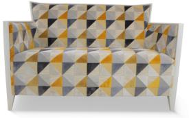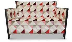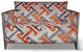 Paget NATHAN canapé laque vieil argent tissu géométric orange