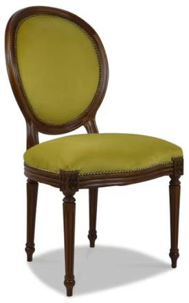 Paget Dimensions : l 51 x h 101 x p 65 cm Chaise Louis XVI médaillon revisitée, tapissé avec un tissu uni de la gamme brunei (différents coloris, traitement teflon) parfaitement encadré par une laque grise vieillie pour un rendu naturel et sobre. Entièrement personnalisable grâce notre vaste choix de tissus et de coloris de bois (code RAL possible). Option clou à clou possible. Idéal pour particuliers, professionnels et CHR. Siège confortable et peu encombrant. Pour salon, salle à mange, chambre, hall d'entrée..... Conception et réalisation dans notre atelier en Bourgogne. Label EPV IMF obtenu en Décembre 2022 Détails techniques: structure en hêtre massif- sculpture main- assise tapissée avec sangles en jute et ressorts biconiques tapissiers- mousse polyuréthane 33kg/m3.