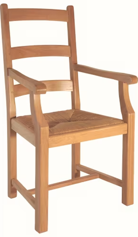 Paget Dimensions : l 42 x h 92 x p 46 cm Fauteuil de complément ou bout de table rustique. Fauteuil rustique, campagnarde 3 barrettes. Fauteuil en chêne massif. Assise amovible. Assise paille de seigle faite à la main ou tapisserie. Fauteuil personnalisable: coloris du bois et revêtements aux choix dans une vaste gamme.