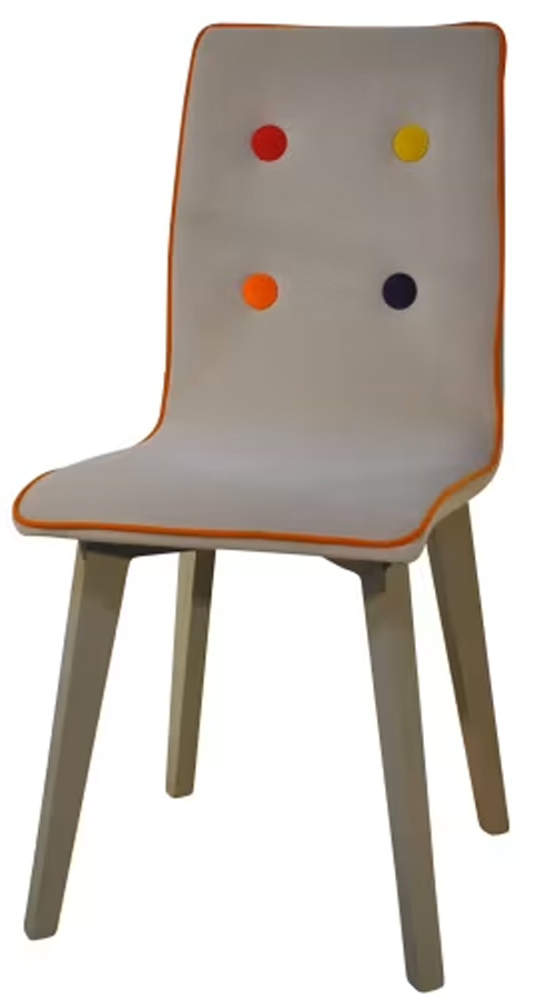 Dimensions : l 70/... x h x p cm Chaise contemporaine coque grise avec une déco multicolore. Chaise fabriquée en Saône et Loire (71).