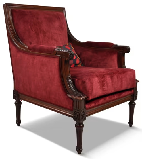 Paget Dimensions : l 74 x h 94 x p 81 cm Bergère Louis XVI Jacob, enhêtre massif. Le tissu rouge profond de la gamme brunei est en accord avec la teinte bois, pour un intérieur élégant et chaleureux. Entièrement personnalisable en tissus et coloris de bois. Idéal pour salon, hall d'entrée... pour particuliers et CHR. Siège cosy haut de gamme. Conception et fabrication dans notre atelier en Bourgogne. Labellisé EPV IMF obtenu en Décembre 2022 Détails Techniques: Structure en hêtre massif - Sculpture main - Assise tapissée sur sangles en jute et ressorts biconiques tapissiers - Mousses polyuréthane: dossier et côté 35 kg/m3, coussin 25 kg/m3. Poids 19 kg. fauteuil