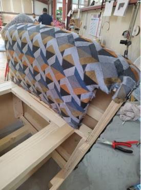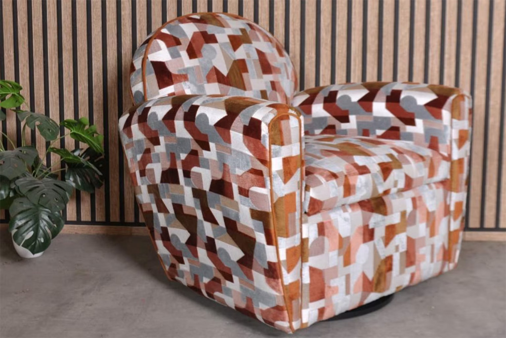 Paget Dimensions : l 84 x h 85 x p 74 cm Tissus: Nebraska cuivre (57% viscose 35% pc 8% polyester) Fiches techniques: Structure en hêtre massif et agglo assise sur sangle élastique mousse assise HR 40 kg/m3 + soft 25 kg/m3 accoudoirs sangles élastiques vertes, fauteuil