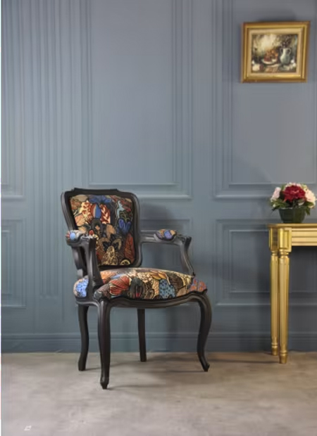 Paget Dimensions : l 60 x h 93 x p 60 cm Edouard est un cabriolet Louis XV revisité, il est tapissé avec un élégant tissu scintillant. Entièrement personnalisable grâce à un vaste choix de tissus et de coloris de bois (code RAL possible). Option clou à clou possible. Siège cosy haut de gamme, pour particuliers et CHR. Idéal pour salon, réception, hall.... Conception et fabrication dans notre atelier en Bourgogne. Label Entreprise du Patrimoine Vivant. IMF obtenu en décembre 2022. Détails Techniques: Structure en hêtre massif - Sculpture main - Assise tapissée avec sangles en jute et ressorts biconiques tapissiers - Mousse polyuréthane 33 kg/m3 Poids 9 kg. fauteuil