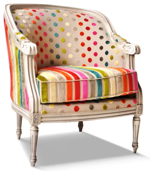 Paget Emmanuelle-laque blanc excellence tissus revue rayure et pois Dimensions : l 69 x h 90 x p 76 cm fauteuil rond rehaussé par une laque moderne brillante Bergère Louis XVI gondole. Siège personnalisable: coloris du bois et revêtements aux choix dans une vaste gamme. Possibilité de réalisation sur mesure. Siège confortable pour: salon, chambre, réception, hall d'entrée. Fauteuil Emmanuelle pour CHR, fauteuil français. Détails Techniques: Structure en hêtre massif - Assise sur ressorts biconiques
