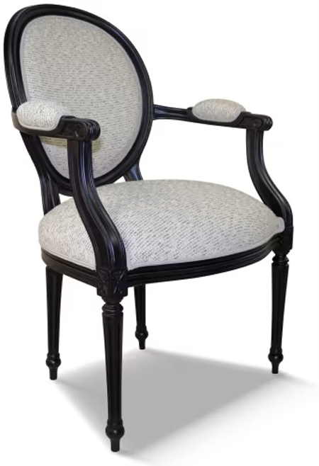 Paget Dimensions: l 70 x h 101 x p 65 cm fauteuil Louis XVI médaillon revisitée. Entièrement personnalisable grâce notre vaste choix de tissus et de coloris de bois, sauf Lasure (code RAL possible). Idéal pour particuliers, professionnels et CHR. Siège confortable et peu encombrant. Pour salon, salle à mange, hall d'entrée,... Conception et réalisation dans notre atelier en Bourgogne. Label EPV IMF obtenu en Décembre 2022 Détails techniques: structure en hêtre massif- sculpture main- assise tapissée avec sangles en jute et ressorts biconiques tapissiers- mousse polyuréthane 33kg/m3. Poids 9 kg.