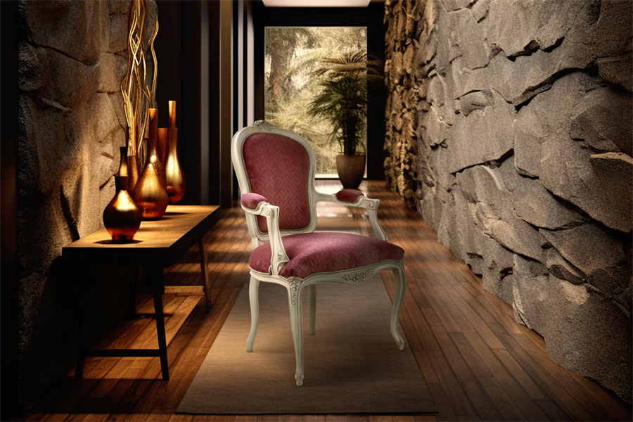Paget Dimensions: l 63 x h 100 x p 62 cm fauteuil baroque plein de personnalité, élégamment présenté avec un tissu de la Maison Christian Lacroix et sublimé par une laque alu. Entièrement personnalisable grâce à un vaste choix de tissus et de coloris de bois (code RAL possible). Siège cosy haut de gamme. Siège confortable pour hall d'entrée, salon,... Pour particulier et CHR. Conception et fabrication dans notre atelier en Bourgogne. Label Entreprise du Patrimoine Vivant (EPV) IMF obtenu en Décembre 2022. Détails Techniques: Structure en hêtre massif - Sculpture main - Assise tapissée avec sangles en jute et ressorts biconiques tapissiers - Mousse polyuréthane 33 kg/m3 Poids 9,3 kg