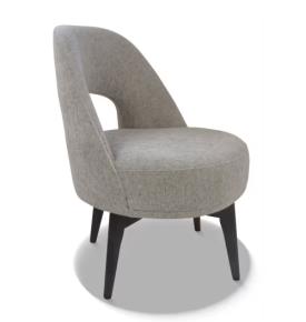 Hugo est un fauteuil moderne peu encombrant qui s'associe à toutes les ambiances, il est personnalisable grâce à de très nombreux tissus et une vaste gamme de couleur bois.