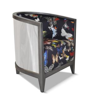 Paget Dimensions : l 63 x h 77 x p 63 cm Fauteuil contemporain, boiserie en hêtre massif dossier arrière constitué de feuille d'aluminium effet miroir. Siège ambiance cosy, design contemporain élégant. Fauteuil Lounge bois. Siège créateur innovant. Siège personnalisable: coloris du bois (code RAL possible) et revêtements aux choix dans une vaste gamme. Possibilité de réalisation sur mesure. Fauteuil pour salon, hall d'entrée, réception. fauteuil Miroir pour CHR, fauteuil français Détails Techniques: Structure en hêtre massif assise tapissée sur sangle élastique mousse HR 40 kg/m3-Assemblage tenons mortaises Poids 16 kg