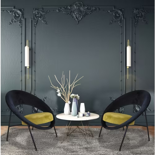 Paget Dimensions : l 76 x h 74 x p 65 cm Le Saturn 71 est une véritable icône design, de part son assise circulaire entourée d'un dossier en forme d'anneau. Dessiné en 1957 par le couple de designers français, Geneviève Dangles et Christian Defrance, ce fauteuil a marqué son époque. Ses courbes, douces et enveloppantes, contrastent avec les lignes droites de son piétement tubulaire caractéristique des 50's. Ce fauteuil, comme toutes les créations de Collections Paget, est entièrement produit artisanalement en France dans son atelier bourguignon. C'est là-bas que les ébénistes, couturières et tapissiers de la marque perfectionnent depuis plus de 5 générations leurs savoir-faire d'excellence. Piétement en métal tubulaire avec couleurs au choix. Dossier en ABS (plastique écologique recyclé) / assise sur fond agglo et mousse HR 40 kg/m3. fauteuil