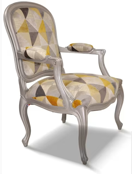 Paget Dimensions : l 65 x h 98 x p 66 cm Fauteuil Louis XV dos à la reine. Assise sur ressorts tapissiers biconiques. Hauteur assise salon. Siège personnalisable: coloris du bois (code RAL possible) et revêtements aux choix dans une vaste gamme. Petit fauteuil faible encombrement, possibilité de réalisation sur mesure. Siège confortable pour: salon, réception, hall d'entrée. Fauteuil Théo pour CHR, fauteuil français. Détails Techniques: Structure en hêtre massif - Sculpture main - Assise tapissée avec sangles en jute et ressorts biconiques tapissiers - Mousse polyuréthane 33 kg/m3 Poids 11,1 kg