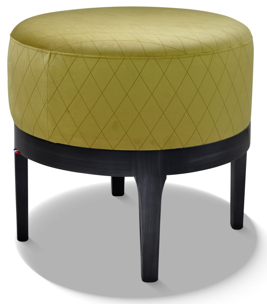 Paget Dimensions : Ø 50 x h 47 cm pouf en hêtre massif. Entièrement personnalisable en tissu et coloris de bois (code RAL possible). Réalisation sur mesure, nous consulter. Idéal pour particuliers, professionnels et CHR. Siège confortable et peu encombrant. Pour salon, salle à mange, chambre, hall d’entrée,… Conception et réalisation dans notre atelier en Bourgogne. Label EPV IMF obtenu en Décembre 2022. Détails techniques : structure en hêtre massif. Mousse HR 40kg/m3- assise sur fond agglo. Poids 5.9 Kg