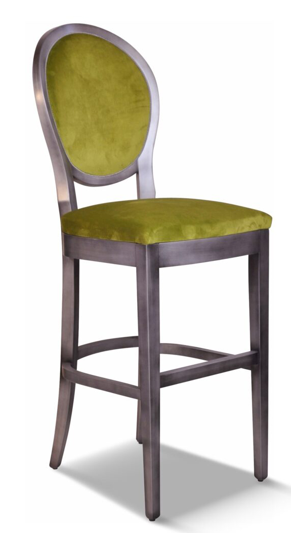 Paget Dimensions : l 45 x h 110/.../125 x p 57 cm Élégant tabouret haut dossier avec un tissu antitache vert très tendance. Tabouret sur mesure, fabriqué à la hauteur souhaitée. Il est entièrement personnalisable grâce à une vaste gamme de tissus et de patines bois. Structure en hêtre massif, assemblage tenons mortaises, assise amovible sur sangles élastiques. Fabrication française.