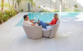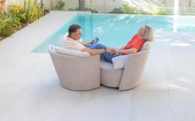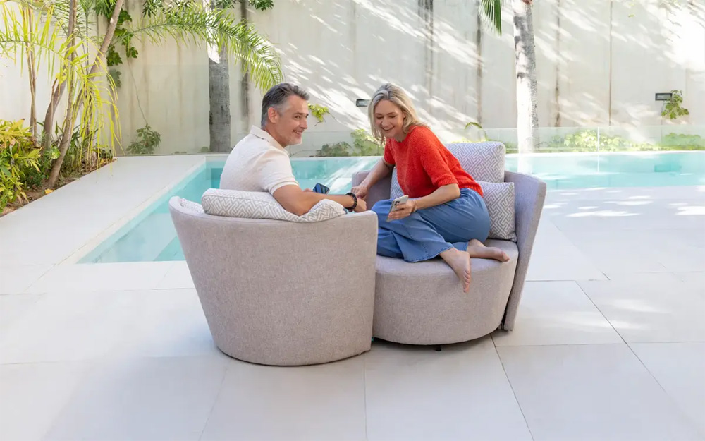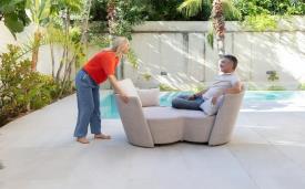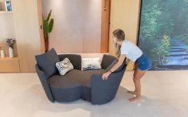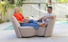 Fama Dimensions : l 170/156 x h 90 x p 93/101/107/115 cm Le canapé Infinity de Fama n’est pas un canapé comme les autres : c’est une pièce révolutionnaire conçue pour répondre aux nouvelles façons de vivre ensemble à la maison. À première vue, il peut sembler conventionnel, mais son siège pivotant permet de le transformer facilement en un canapé moderne type « Toi et Moi », une proposition unique qui favorise la connexion et la proximité sans renoncer au confort individuel. Dans un monde où chacun est connecté à son téléphone portable, Infinity crée un point de rencontre entre le numérique et l’humain. Son design courbé et sa structure permettent de multiples configurations, y compris une option chaise longue, pour que chaque utilisateur puisse profiter de son espace idéal : pour lire, regarder des séries, travailler ou simplement se détendre. Ses formes arrondies, son dossier enveloppant et la douceur de ses coussins en font un canapé à la fois confortable et élégant, parfait pour les salons où le design et la fonctionnalité vont de pair. De plus, grâce à son système de rotation, il s’adapte à chaque situation sans avoir à déplacer les meubles ni perdre d’espace. Le canapé Infinity est conçu pour les foyers contemporains, où l’on valorise autant le design intelligent que la connexion émotionnelle. Une pièce unique pour ceux qui recherchent quelque chose de différent, fonctionnel et avec une touche de rêverie.