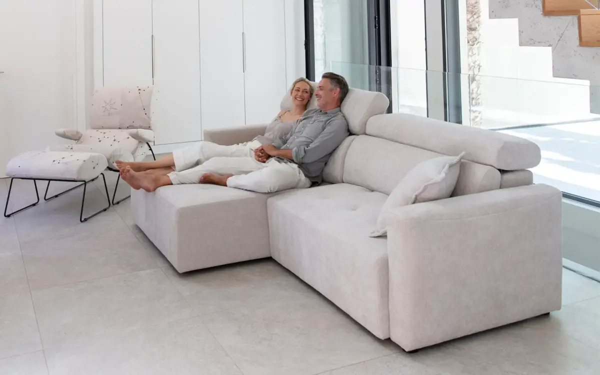Fama Dimensions : l 178/.../296 x h 86/104 x p 99/160 cm Paradis Duet est un canapé extensible à mécanisme motorisé qui allie élégance, fonctionnalité et un confort remarquable dans toutes ses positions. Son design compact aux lignes douces est idéal pour ceux qui recherchent un canapé moderne, capable de s’intégrer aussi bien dans de grands espaces que dans des salons plus réduits. D’une simple pression sur un bouton, l’assise s’allonge jusqu’à 60 cm de profondeur, créant un espace de détente parfait pour lire, regarder des films ou simplement se relaxer. Ce mouvement est rendu possible grâce à un système extensible exclusif et breveté par Fama Sofás, qui offre un réel avantage par rapport aux autres modèles du marché : une fois déployée, la surface d’assise atteint 110 cm, alors que la plupart des canapés extensibles ne dépassent pas 90 cm. Plus d’espace pour s’étirer, s’allonger ou se détendre à sa manière. Le dossier bas articulé permet d’ajuster l’inclinaison pour s’adapter à chaque moment, tandis que la nouvelle combinaison dossier et soutien lombaire offre une assise confortable, ergonomique et enveloppante. Son design léger est renforcé par l’absence de volume superflu dans le dossier, donnant naissance à un canapé visuellement plus épuré et plus élégant, sans renoncer au confort qui caractérise nos créations. Paradis Duet est l’option idéale pour ceux qui recherchent un canapé extensible motorisé à l’esthétique plus sobre. Contrairement au modèle Paradis original, ce design se passe du garnissage intérieur du dossier et le remplace par une solution en deux parties, apportant une plus grande légèreté visuelle et une excellente adaptabilité à différents styles et besoins. canapé convertible