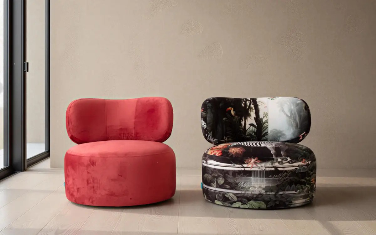 Fama Dimensions : l 80 x h 68/72 x p 78 cm Zora est né comme un fauteuil idéal pour accompagner chacun de nos modèles, en apportant une touche distinctive sans rompre l’harmonie de l’ensemble. Son assise ovale lui confère une personnalité singulière, s’éloignant des formes circulaires conventionnelles pour offrir une silhouette plus dynamique et élégante. Le dossier, soigneusement étudié, épouse naturellement le dos et permet de s’asseoir confortablement, de face ou légèrement de côté, en appuyant le bras en toute aisance. Disponible avec un pied en plastique dissimulé pour une image plus légère, Zora peut également être fabriqué avec une base pivotante, ajoutant un supplément de polyvalence et de confort qui en fait une pièce pratique et fonctionnelle au quotidien. Un fauteuil d’appoint pensé pour associer design, confort et liberté de mouvement dans tout espace.
