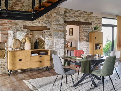 Girardeau Une collection de meubles déco en bois au motif chevron Chaque meuble, minutieusement élaboré, révèle l’élégance brute et authentique de ce matériau dans son état le plus pur. Sans ornements superflus, cette gamme souligne la chaleur et la beauté intemporelle du bois, créant ainsi un intérieur apaisant et raffiné. Plongez dans un univers où la simplicité se transforme en luxe, et où le naturel se conjugue avec élégance.