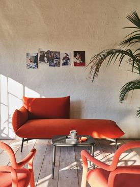 chaise longue Area avec pieds en métal peint. Assise et dossier recouverts de tissu. Area représente une solution dynamique pour créer des postes de travail minimalistes et ultra-confortables, dans un environnement de travail qui encourage le partage d'idées et d'énergies.