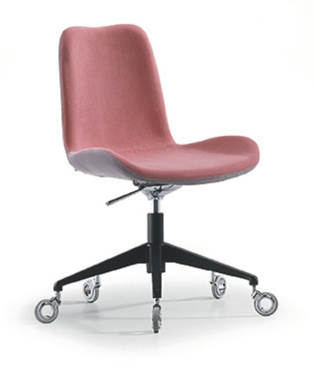chaise de bureau Dalia, pivotante et réglable en hauteur, avec base à cinq branches en métal sur roulettes. Assise revêtue de cuir, similicuir ou tissu.