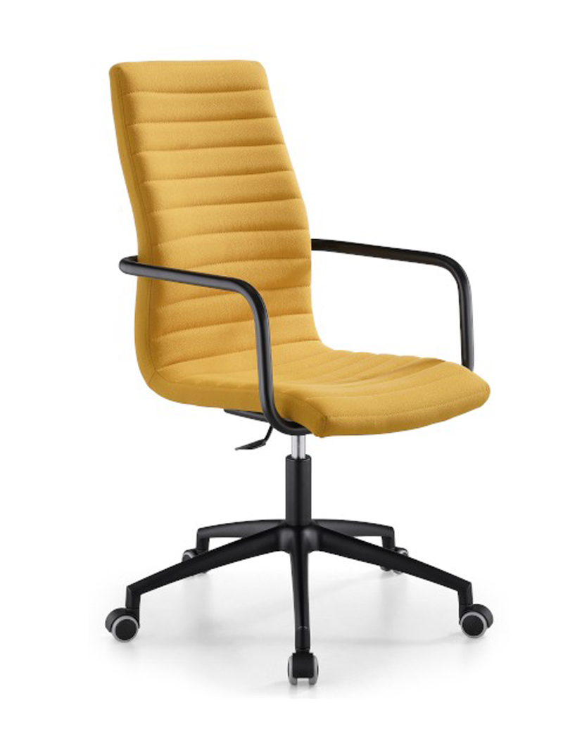 Dimensions : l 115/... x h x p cm fauteuil de bureau Star, pivotant et réglable en hauteur. Dossier haut et base à cinq branches sur roulettes. Assise revêtue de tissu, cuir ou similicuir.