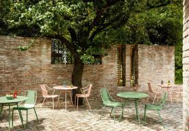 Midj Design. Paolo Vernier, 2016 Dimensions : Ø 70/75/90 x h 73 cm Piètement Ola en métal peint adapté à un usage intérieur et extérieur. Convient aux plateaux carrés de 75×75 cm à 90×90 cm. Plateau vendu séparément. table bistrot