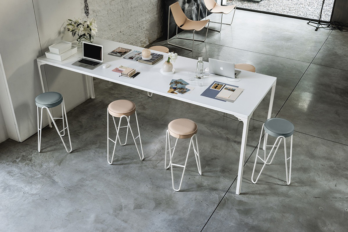 Armando est une table conçue pour allier solidité structurelle et design épuré. Les pieds inclinés, fixés au plateau avec un système de montage précis, confèrent à la table stabilité et légèreté visuelle. Le plateau en métal, associé à une structure métallique personnalisable, garantit résistance et esthétique moderne. Disponible en différentes dimensions, Armando est idéal pour les espaces résidentiels et professionnels.