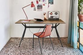 Design Balutto Associati, 2010 Dimensions : l 140/160/180 x h 76/77 x p 80/90 cm table fixe Brioso en métal. Plateau disponible en verre transparent ou en bois.