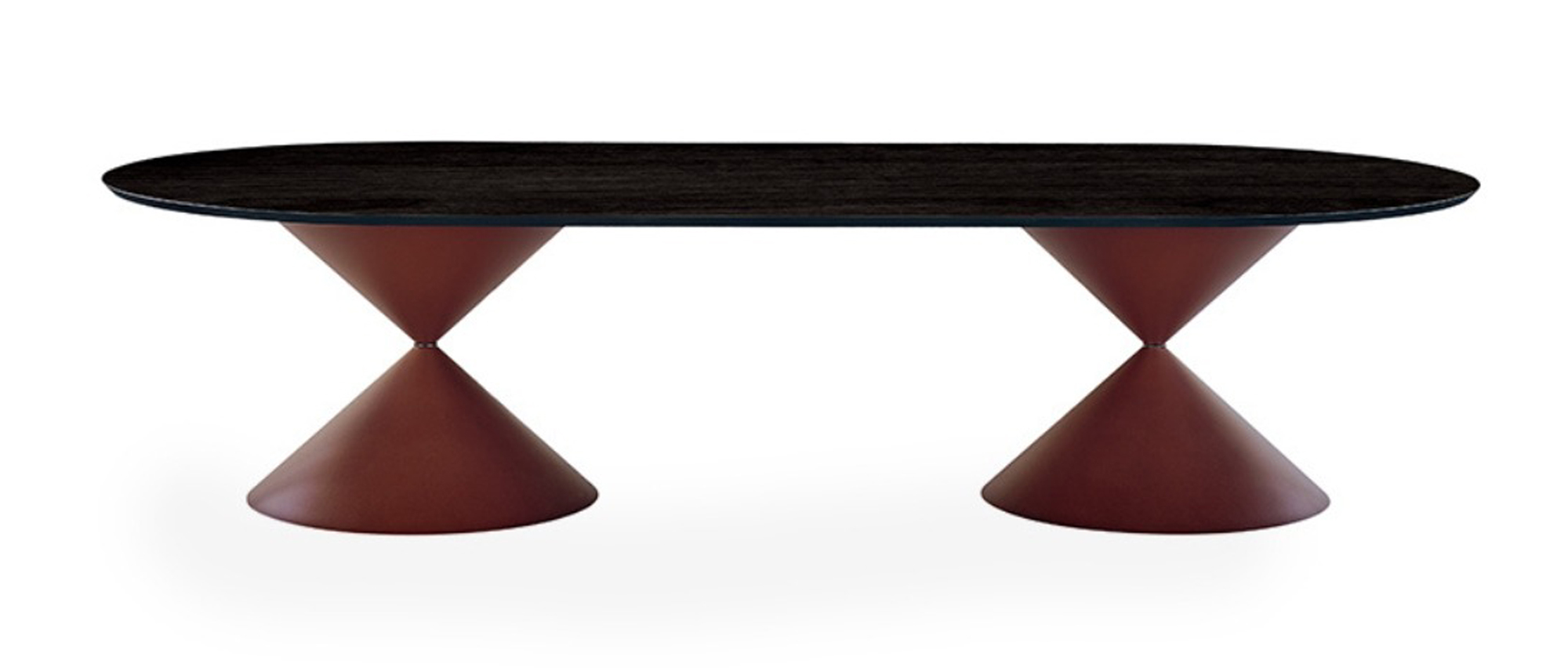 Midj Design Paolo Vernier, 2019 Dimensions : l 300 x h 76 x p 150 cm La table Clessidra se distingue par son design iconique et des matériaux de haute qualité. Le plateau est disponible en bois, cristal-céramique, verre ou marbre, associé à une structure métallique personnalisable dans différentes finitions. Cet équilibre entre élégance et fonctionnalité rend Clessidra idéale pour les espaces résidentiels et professionnels. Piétement : bois